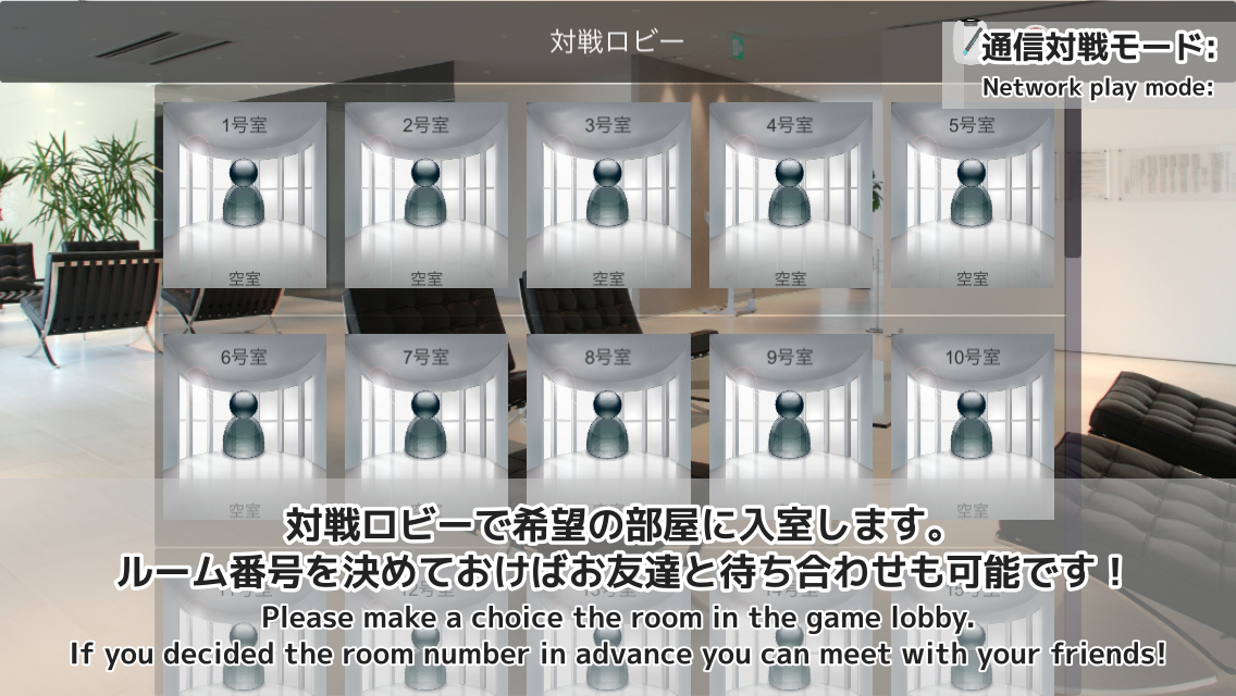 通信対戦モードでは、対戦ロビーから対戦者を選んで対戦します。